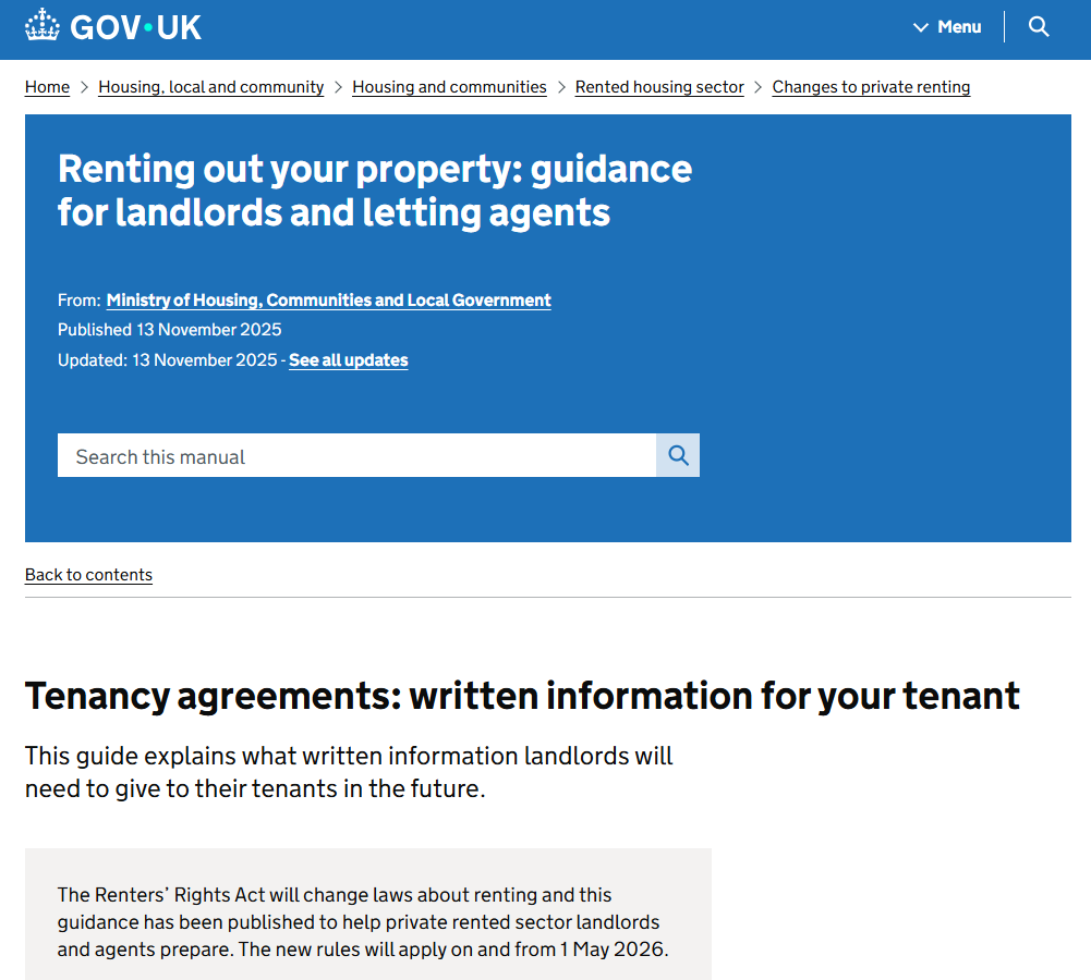 This guidance, released by the Government on Friday 20 March 2026, contains all of the information that landlords must provide to tenants if;