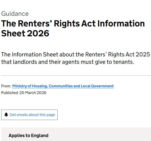 This guidance, released by the Government on Friday 20 March 2026, contains all of the information that landlords must provide to tenants if; Or, if;