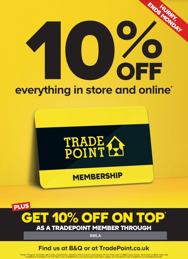 PLUS AN EXTRA 10% OFF FOR SWLA TRADEPOINT MEMBERS! 4th – 7th AUGUST 2023